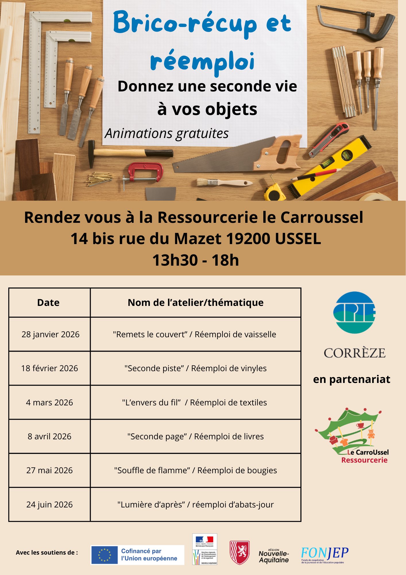 Venez participer à nos ateliers gratuits un mercredi après midi par mois en partenariat avec le Carroussel à Ussel.