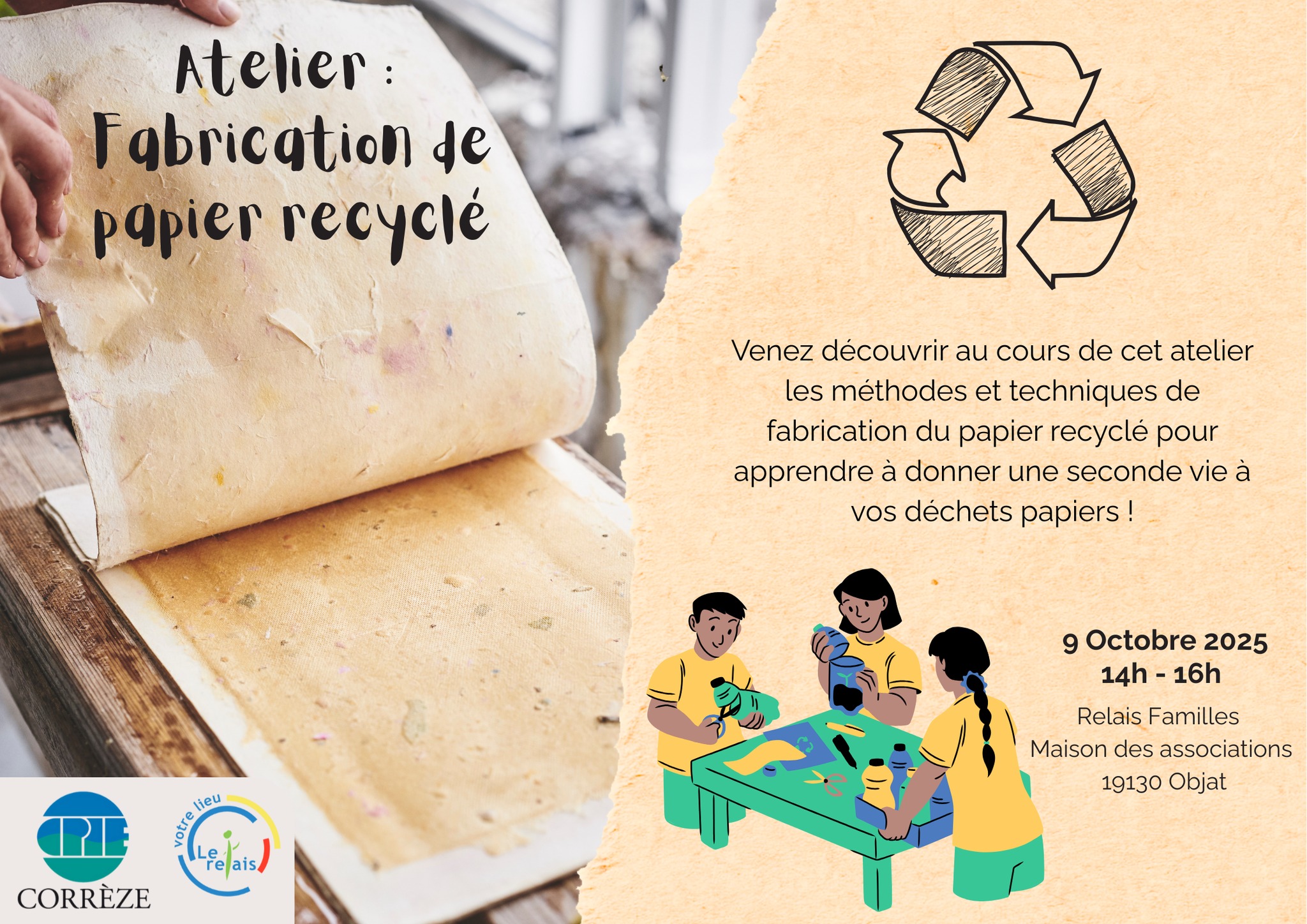 Atelier Papier recyclé avec Relai familles à Objat